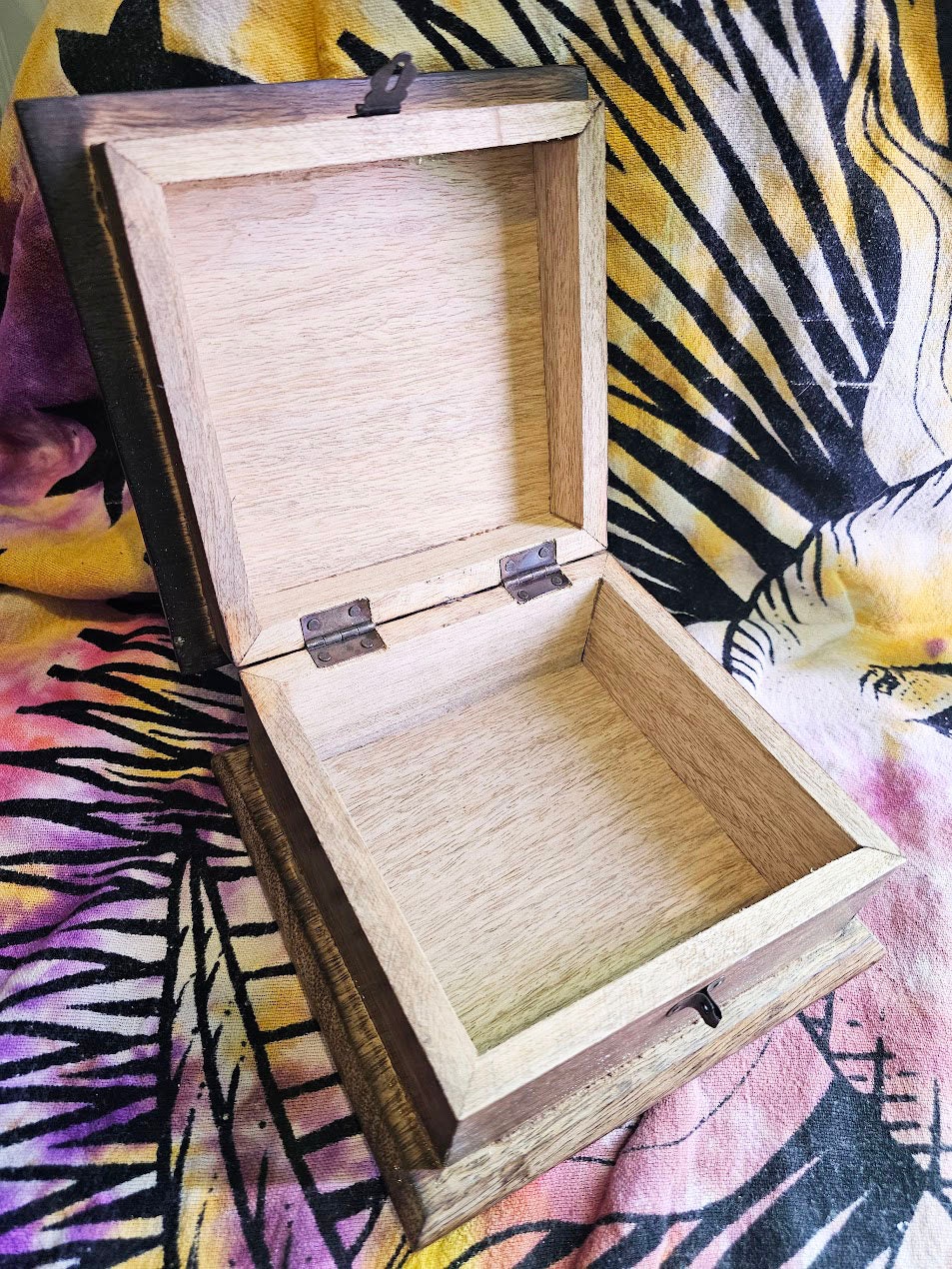 Since all boxes are handcrafted, variations will happen. Wood color, engravings, and flaws are all part of the beauty of these boxes.