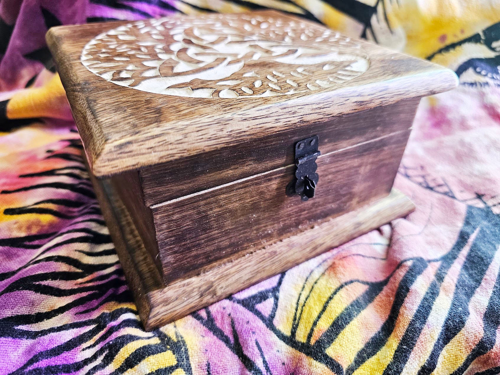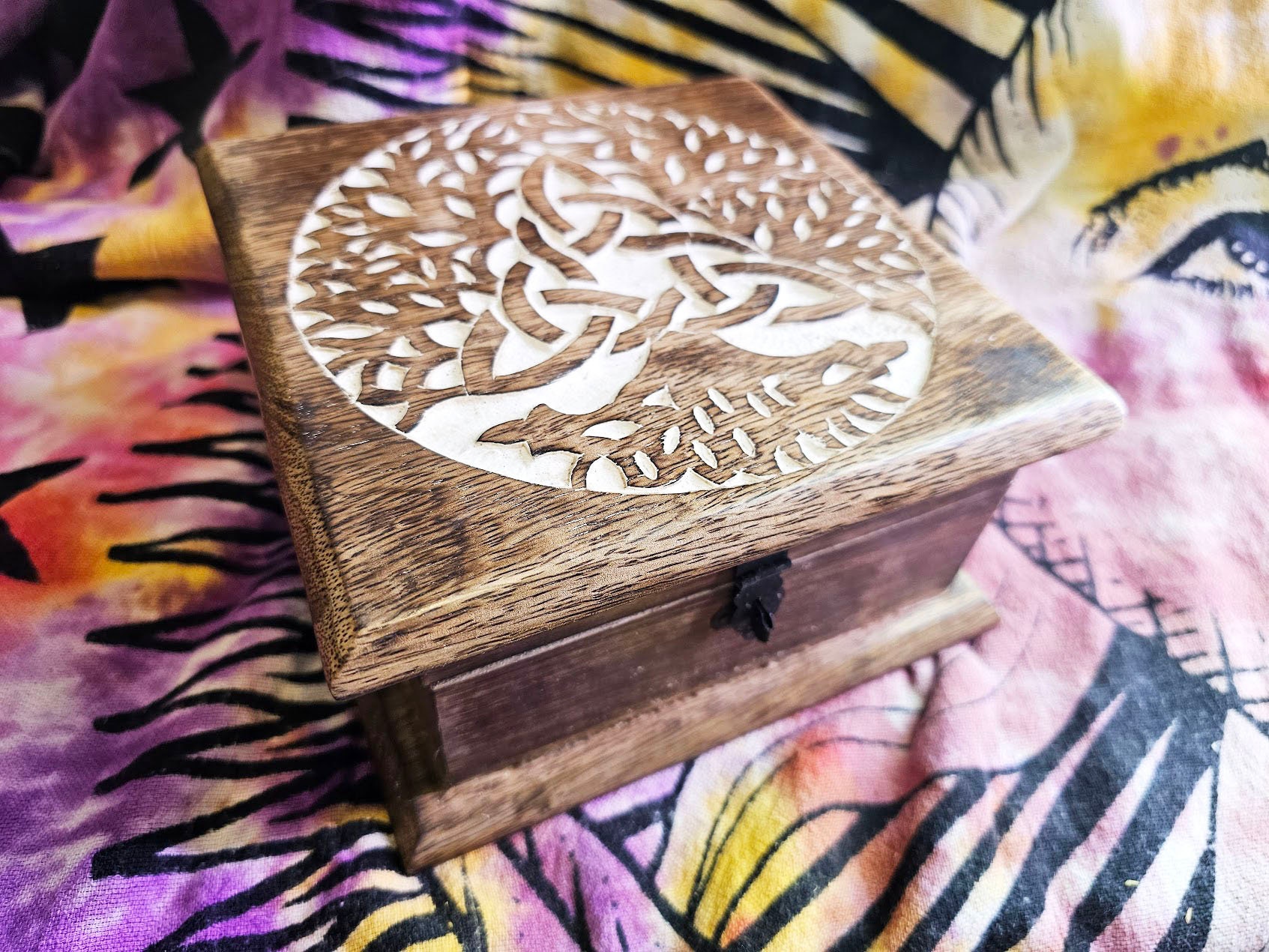 Tree of Life Wood Celtic Chest, Irish Wooden Latch Box, Renaissance Welsh Keepsake, Hand Engraved Magic Box, Witch Tarot Card, Wiccan, Pagan