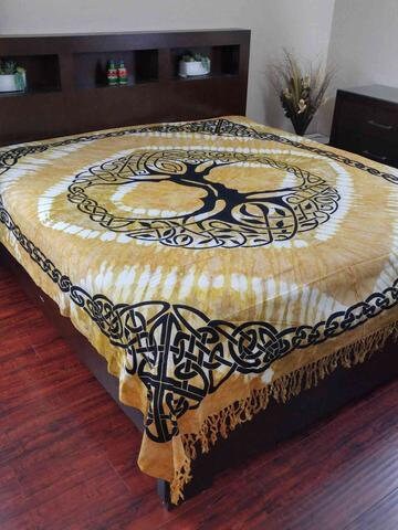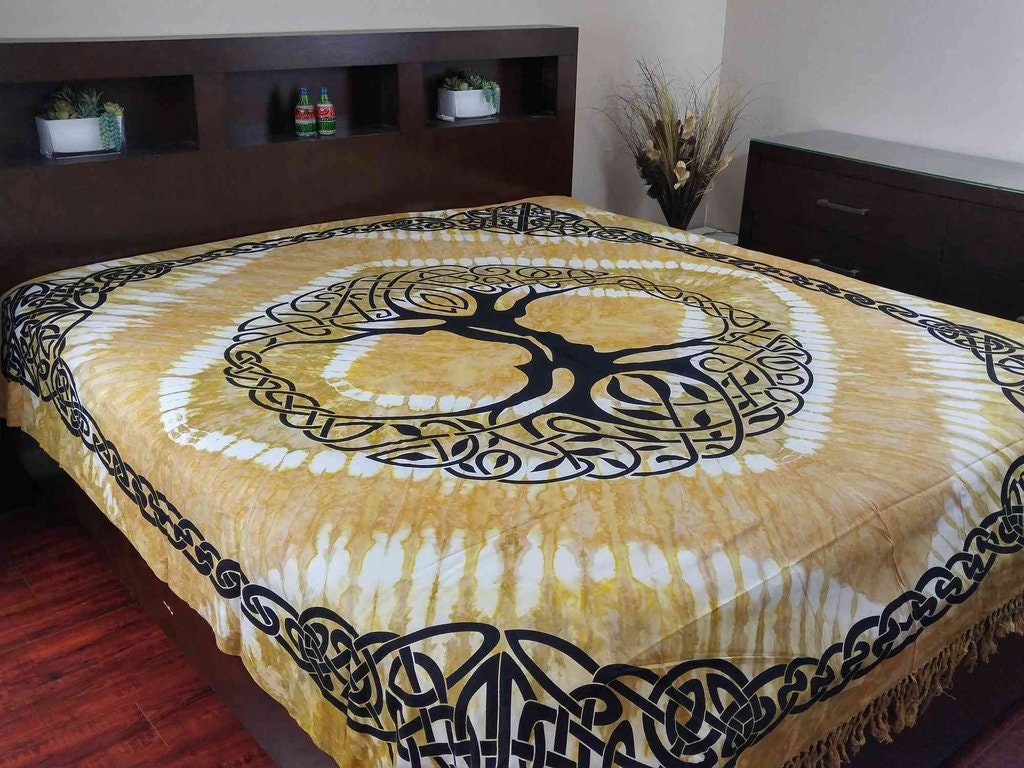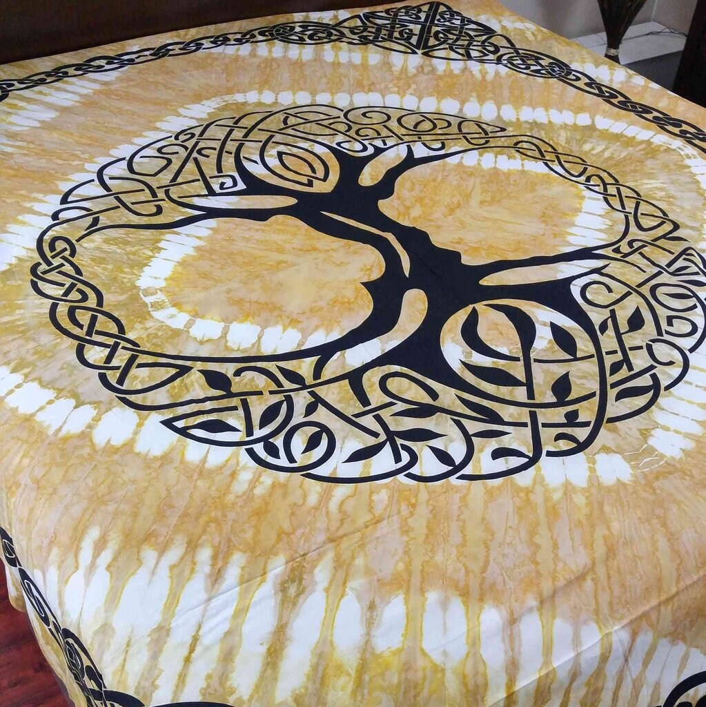Brown Celtic Tree of Life Tapestry, Tie Dye, Irish Full Bed Spread, Renaissance Festival Wall Hanging, Welsh Table Cloth, Decoration