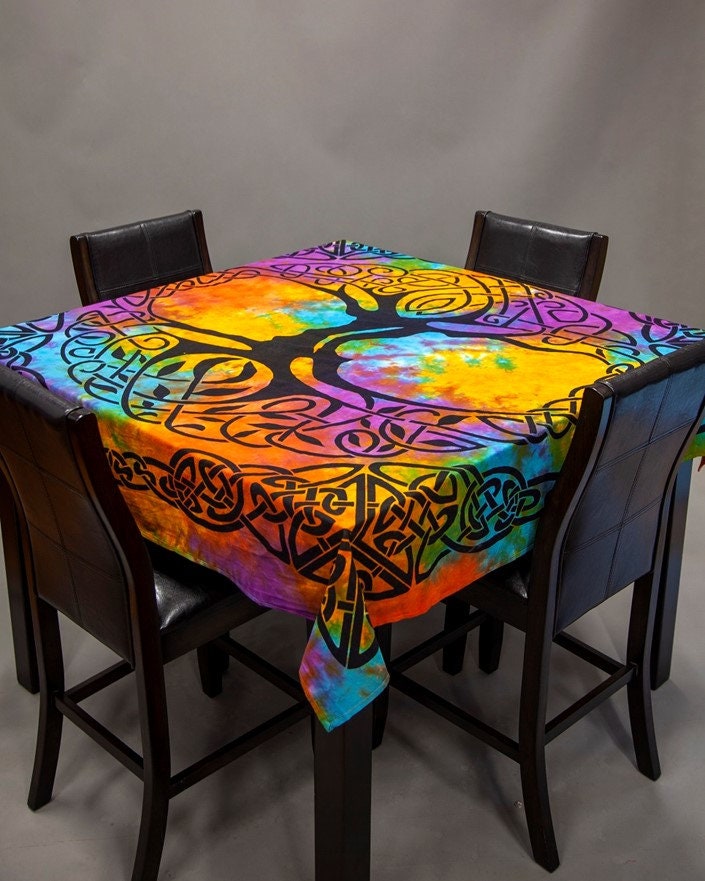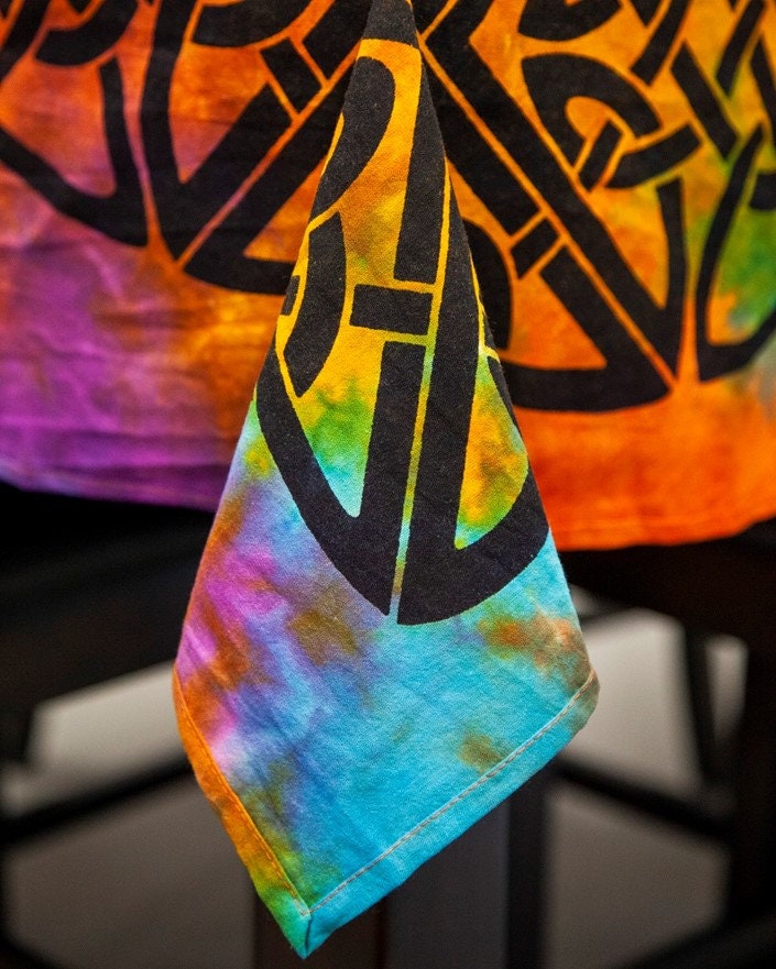 Square Green Celtic Triquetra Knot Tapestry, Tie Dye Irish Tablecloth, Renaissance Festival Wall Hanging, Welsh Table Cloth, Hippy Decor