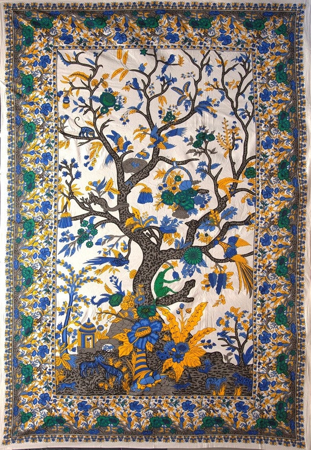 Blue/Yellow Celtic Tree of Life Tapestry, Fabric Decor, Irish Bed Spread, Renaissance Festival Wall Hanging, Welsh Table Cloth, Hippy Sheet